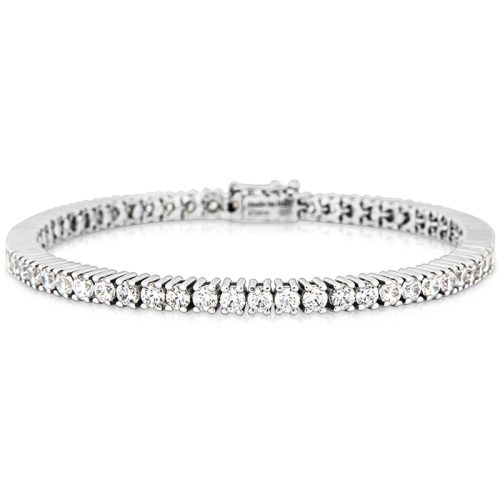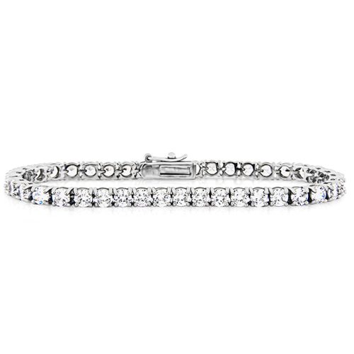 Bracciale tennis classico diamante 2,5mm, in Ag925 rodiato con pietre taglio brillante simulanti il diamante da 0,05 carati ognuna, montate su castoni a griffe con quattro punte, chiusura con molla e un otto di sicurezza. Ottima manifattura del bracciale.