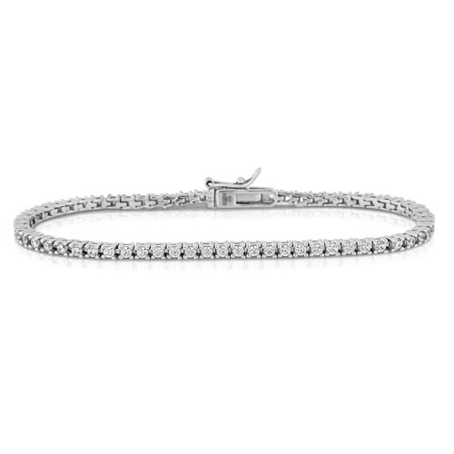 Bracciale tennis classico diamante 1 carato, in Ag925 rodiato con pietre taglio brillante simulanti il diamante da 1 carato ognuna, montate su castoni a griffe con quattro punte e con un otto di sicurezza. Ottima manifattura del bracciale.