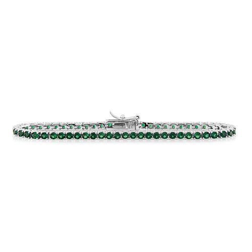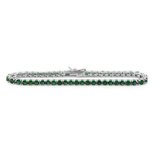 Bracciale tennis classico in Ag925 rodiato con pietre taglio brillante simulanti lo smeraldo da 0,05 carati ognuna, montate su castoni a griffe con quattro punte, chiusura con molla e un otto di sicurezza. Ottima manifattura del bracciale.
