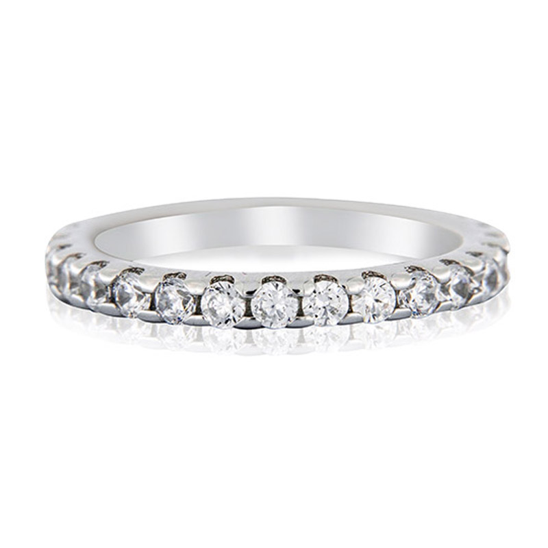 Anello eternity diamante 2,5mm, in Ag925 rodiato con pietre taglio brillante simulanti il diamante da 0,05 carati ognuna, montate su castoni a griffe con quattro punte.