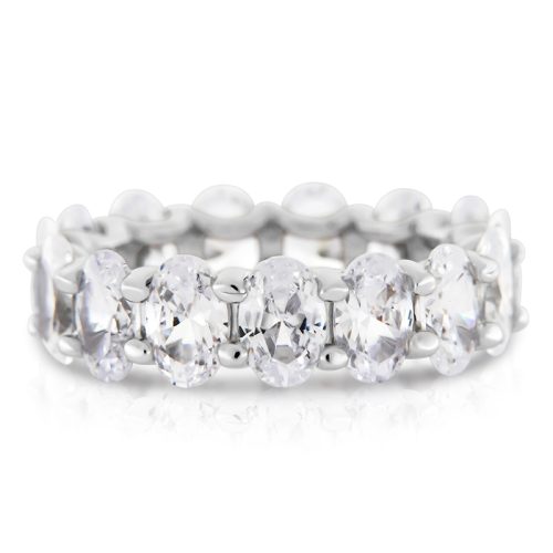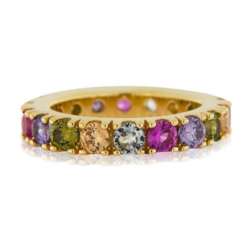 Anello eternity diamante brown 3mm, in Ag925 rodiato con pietre taglio brillante simulanti il diamante brown da 0,10 carati ognuna, montate su castoni a griffe con quattro punte placcate oro giallo 18kt. Eternity Collection