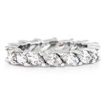 Anello eternity diamante marquise, in Ag925 rodiato con pietre taglio marquise simulanti il diamante da 0,20 carati ognuna, montate su castoni a griffe con due punte.