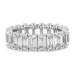 Anello eternity diamante smeraldo, in Ag925 rodiato con pietre taglio smeraldo simulanti il diamante da 0,40 carati ognuna, montate su castoni a griffe con quattro punte.