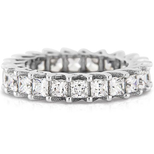 Anello eternity Radiant Binario in Ag925 placcato Oro giallo 18kt con pietre taglio radiant simulanti il diamante fancy giallo da 0,80 carati ognuna, montate su un binario.