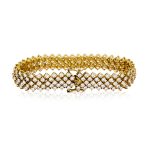 Bracciale nido ape giallo da 12mm, placcato Oro giallo 18kt, con maglia semi morbida e arricchito da pietre simulanti il diamante incastonate a pavè. Molto elegante e luminoso.