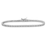 Bracciale tennis classico diamante 2,5mm, in Ag925 rodiato con pietre taglio brillante simulanti il diamante da 0,05 carati ognuna, montate su castoni a griffe con quattro punte, chiusura con molla e un otto di sicurezza. Ottima manifattura del bracciale.