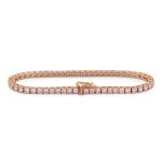 Bracciale tennis fancy rosa 3mm, in Ag925 placcato Oro rosa 18kt con pietre taglio brillante simulanti il diamante fancy rosa da 0,10 carati ognuna, montate su castoni a griffe con quattro punte e con un otto di sicurezza. Eccellente manifattura del bracciale, giusto connubio tra robustezza del bracciale ed estetica.