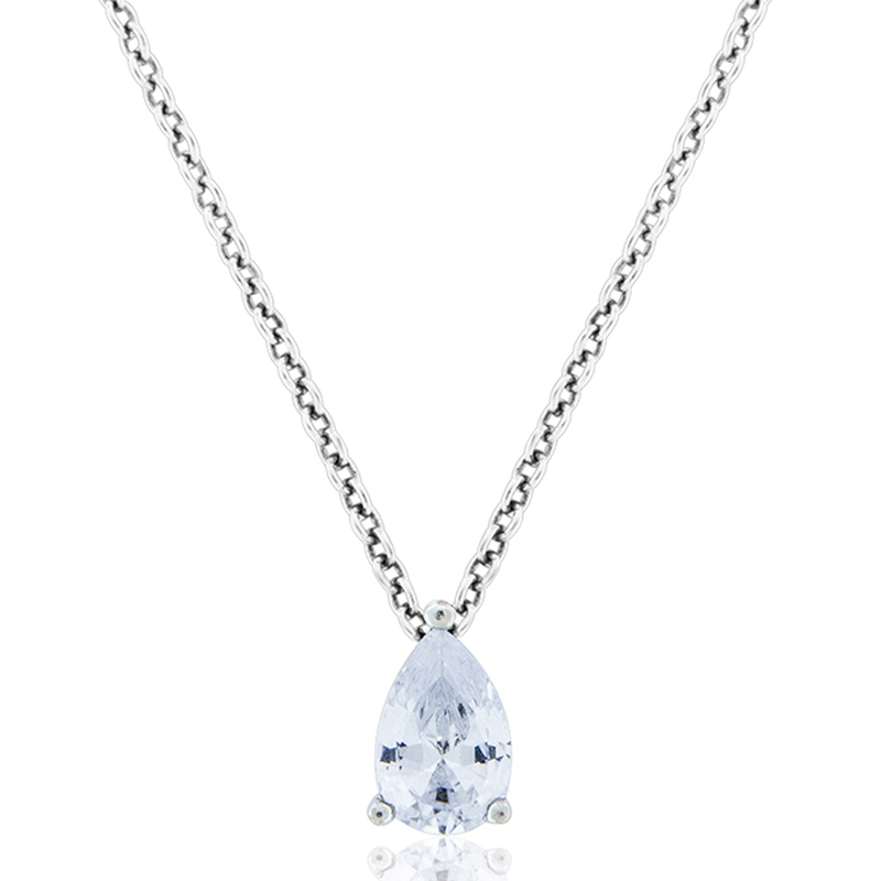 Catenina girocollo punto luce in Ag925 rodiato, con pietra taglio goccia simulante il diamante da 1 carato, montata su un castone con tre punte a filo, lunghezza catenina 40,42cm.