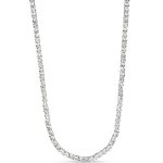 Collana tennis classica in Ag925 rodiato, con pietre taglio brillante simulanti il diamante da 0,50 carati ognuna, montate su castoni a griffe con quattro punte, chiusura con un otto di sicurezza, lunghezza collana 90cm.