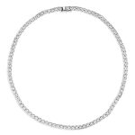 Collana tennis classica in Ag925 rodiato, con pietre taglio brillante simulanti il diamante da 0,25 carati ognuna, montate su castoni a griffe con quattro punte, chiusura con un otto di sicurezza, lunghezza collana 42cm.