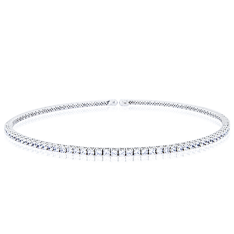 Collare tennis rigido in Ag925 rodiato, con pietre taglio brillante simulanti il diamante da 0,10 carati ognuna, montate su castoni a griffe con quattro punte, misura da 34 a 38cm.