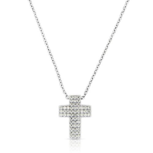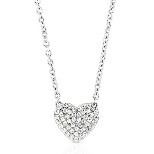 Catenina girocollo cuore in Ag925 placcato Oro giallo 18kt, con pietre taglio brillante simulanti il diamante, montate a pavè, con aggiornatura posteriore. Dimensione cuore 10x11mm e lunghezza catenina 42cm.