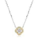 Catenina girocollo con quadrifoglio bicolore in Argento 925 rodiato, composto da pietre taglio brillante simulanti il diamante di varie dimensioni. Quadrifoglio da 9mm e lunghezza catenina 42cm.